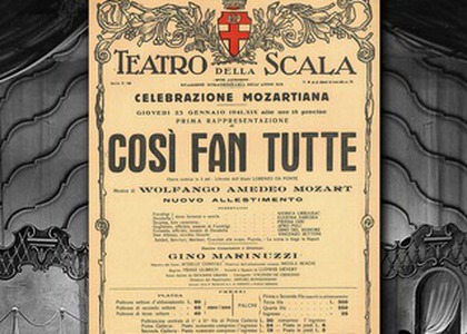 Among Mozart's Da Ponte trilogy (The Marriage of Figaro, Don Giovanni, Così fan tutte), this is the least frequently performed opera at La Scala. That makes even more valuable the presence of Romanian artists in the 20th-century Milanese productions: soprano Viorica Ursuleac (Fiordiligi) in the 1941 staging, tenor Petre Munteanu (Ferrando), and conductor Ionel Perlea in the 1947 production.